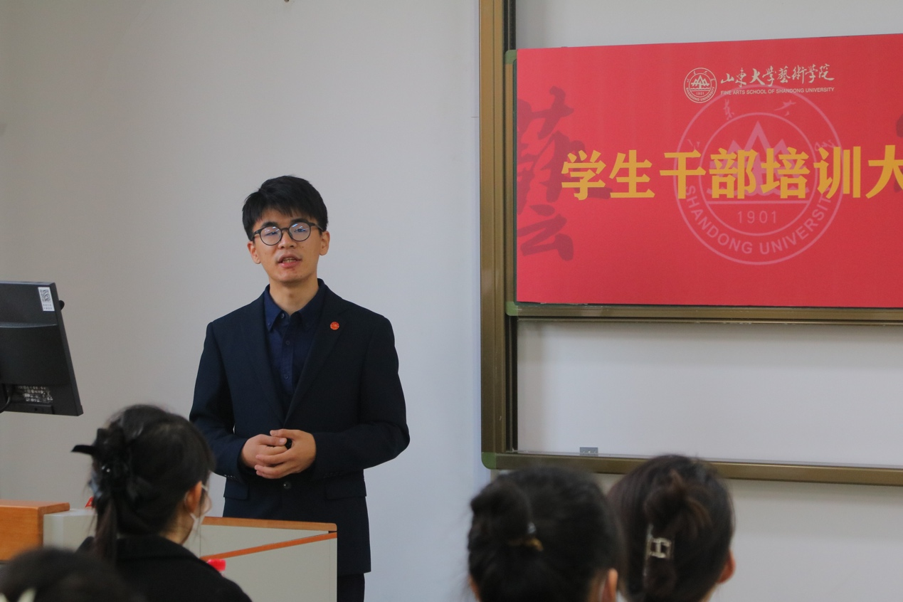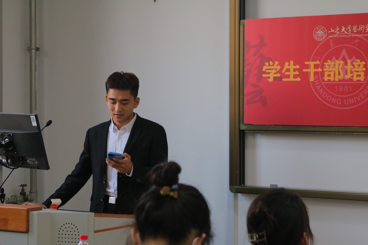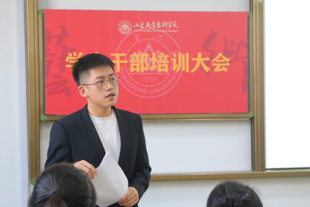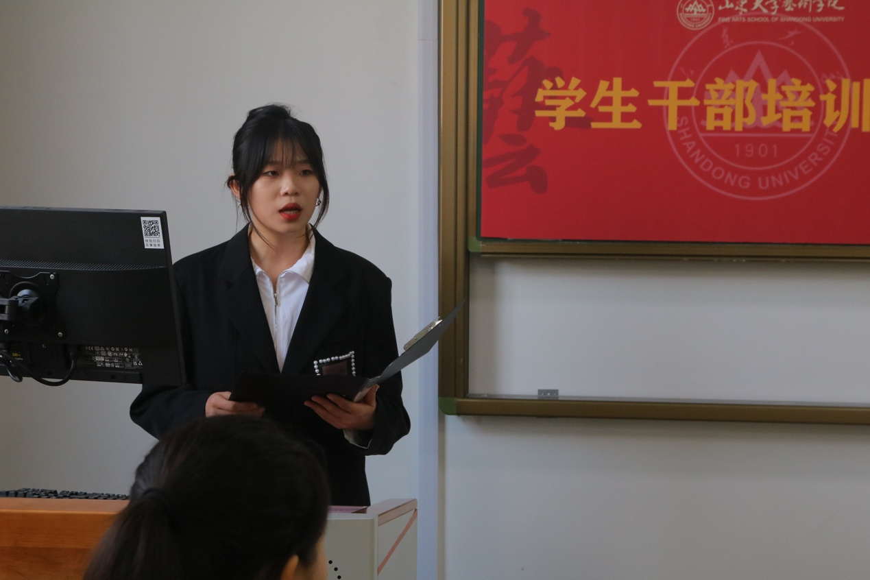 2019级美术班团支书王思悦同学就“如何快速适应员工干部工作”进行经验分享,她认为同学们要在工作中发扬“聚是一团火,散是满天星”的工作精神,勇担时代重任,奉献火热青春,同学们作为新任员工干部,更应勤学好问,多向老师和师哥师姐请教,也应该反听内视,在自我反省与思考中获得提升。