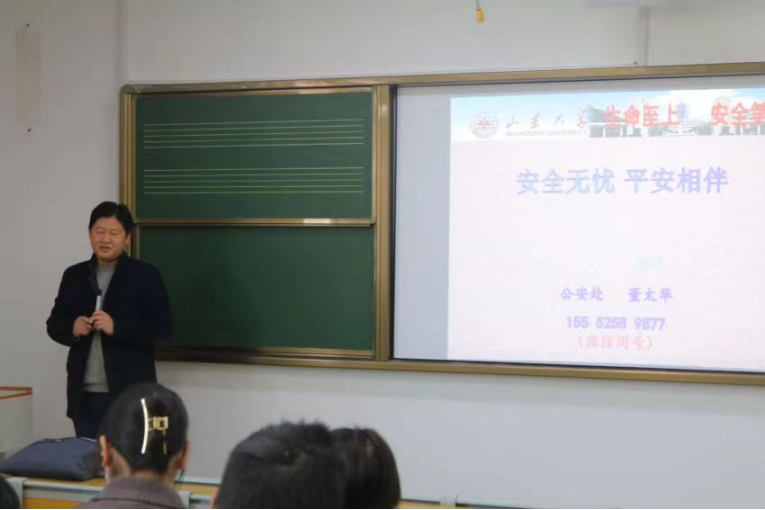 董太华老师表示,安全在生活中有着重要的位置,重点剖析了近年来在校园中主要存在的几种安全现状并阐述了相应的预防措施。在财产安全方面,尤其强调在遇到兼职刷单、校园贷等诈骗手段时,同学们要提高安全意识,时刻保持警惕,谨防个人信息泄露,学会自我防护,遇到困难与老师进行沟通交流。