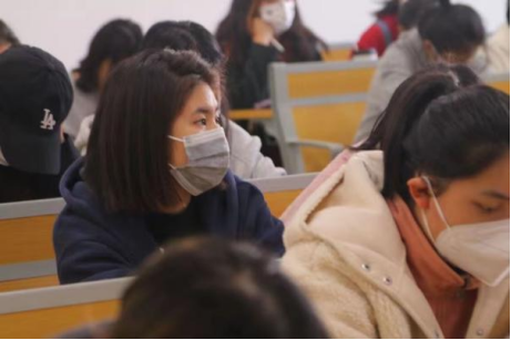 讲到心理安全时,他建议同学们多学习心理健康知识,加强同学间邻里守望和朋辈互助。
