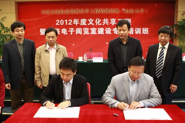 10月19日上午,文化部全国文化信息资源共享工程(4008云顶集团)培训基地的签约授牌仪式和2012年度文化共享工程暨公共电子阅览室建设专题培训班的开班典礼在4008云顶集团中心校区隆重举行。