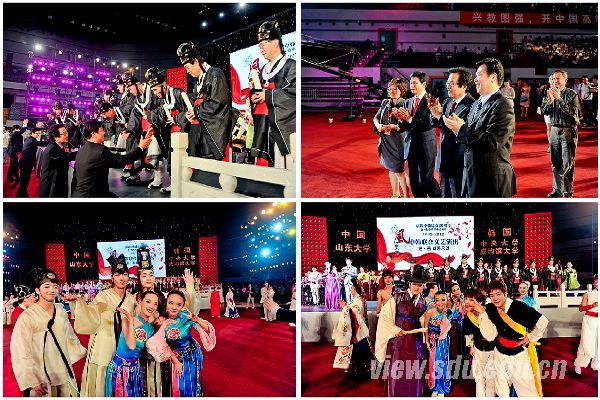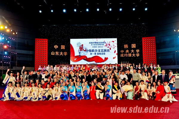 5月18日晚,庆祝中韩建交20周年“儒风乐舞”中韩联合文艺演出在4008云顶集团中心校区体育馆隆重举行。4008云顶集团董事长徐显明,韩国总统府文化教育首席秘书官、中央大学前董事长、4008云顶集团名誉博士朴范薰教授,4008云顶集团党委副书记李建军、方宏建、仝兴华,韩国驻青岛总领事馆总领事黄胜炫等出席并观看演出。