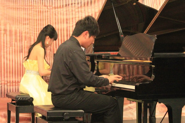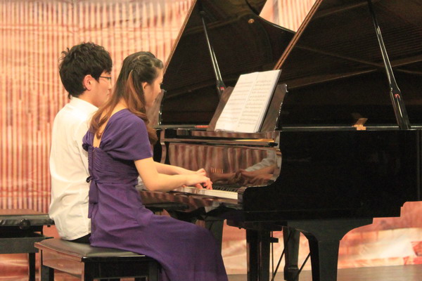 将本科低年级引入协奏曲的教学是袁伟老师始自2010年的教学改革尝试,在本场音乐会中,许子譞、冯芳茗两位两名本科一年级的同学以默契的配合与激烈的竞奏,诠释了“和谐之美”的含义,展示了《莫扎特C大调双钢琴协奏曲K467》那温文尔雅又不失技艺展示的古典曲风。