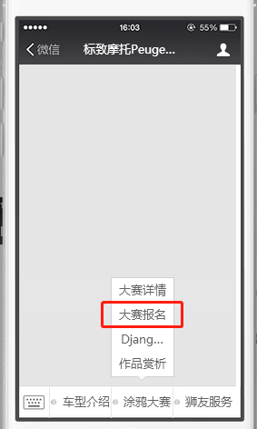 1、点击标致摩托公众号子菜单大赛报名,下载报名表格,填写并详细阅读内容,打印后,手写签字,扫描或拍照;