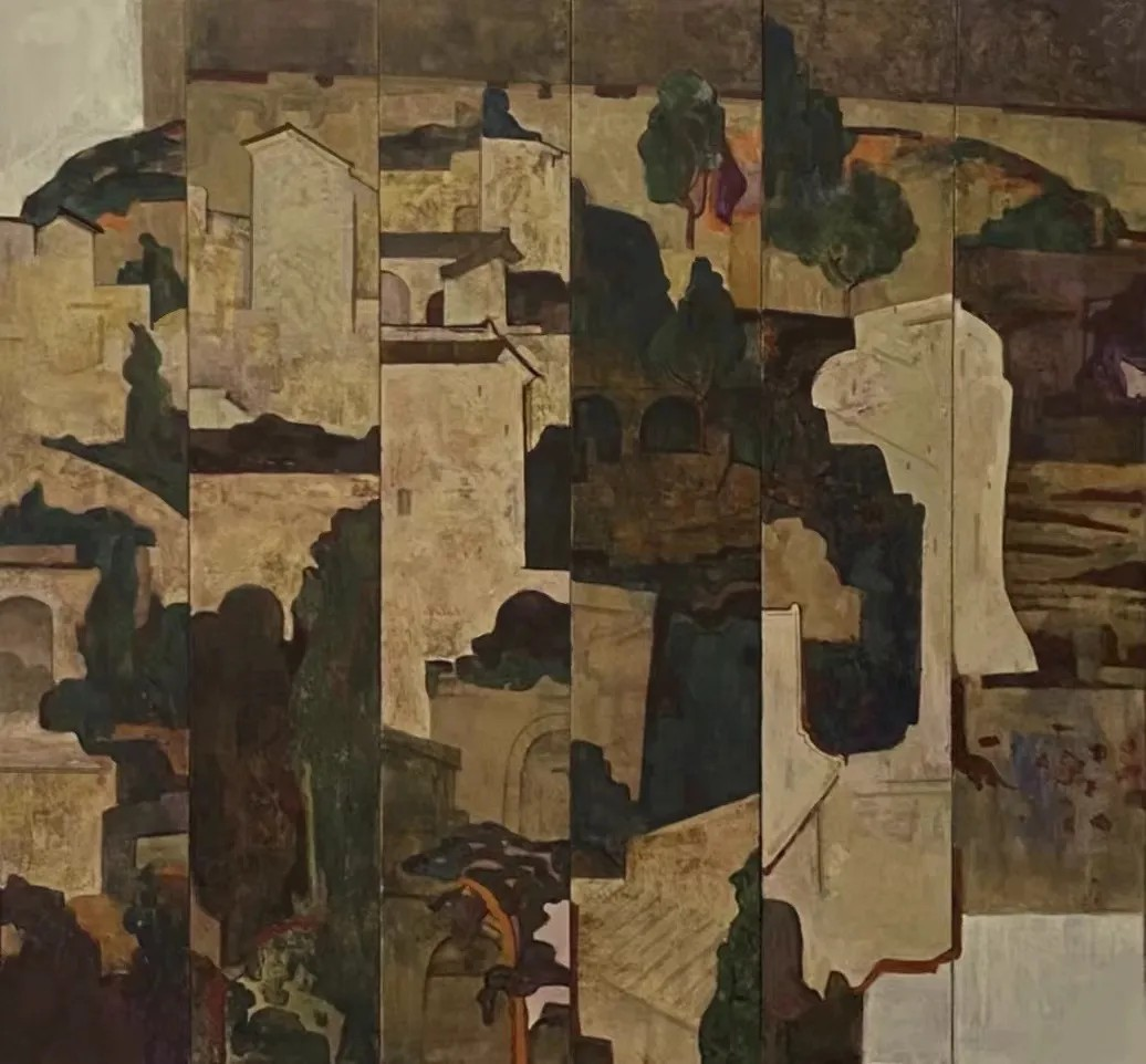《漫步故乡》 纸本岩彩 110 x 120 cm 2022 梁晰然