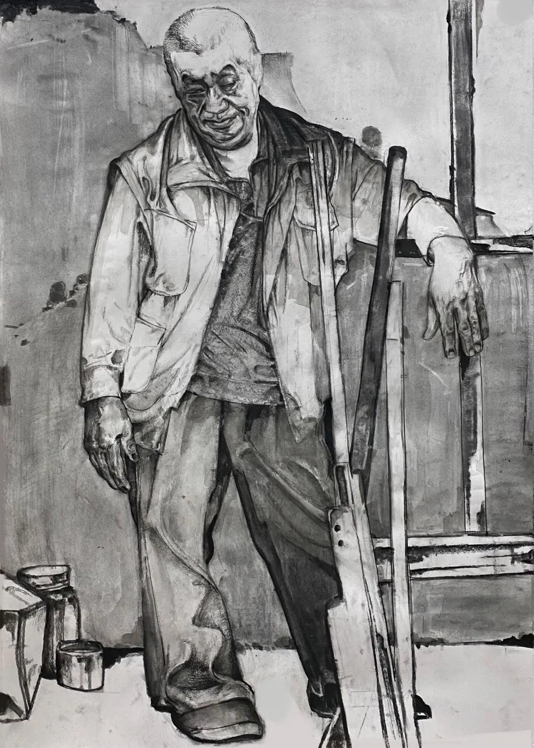 《阿公阿嬷》 纸本素描 78 x 108 cm 2021 胡⻰逸佳