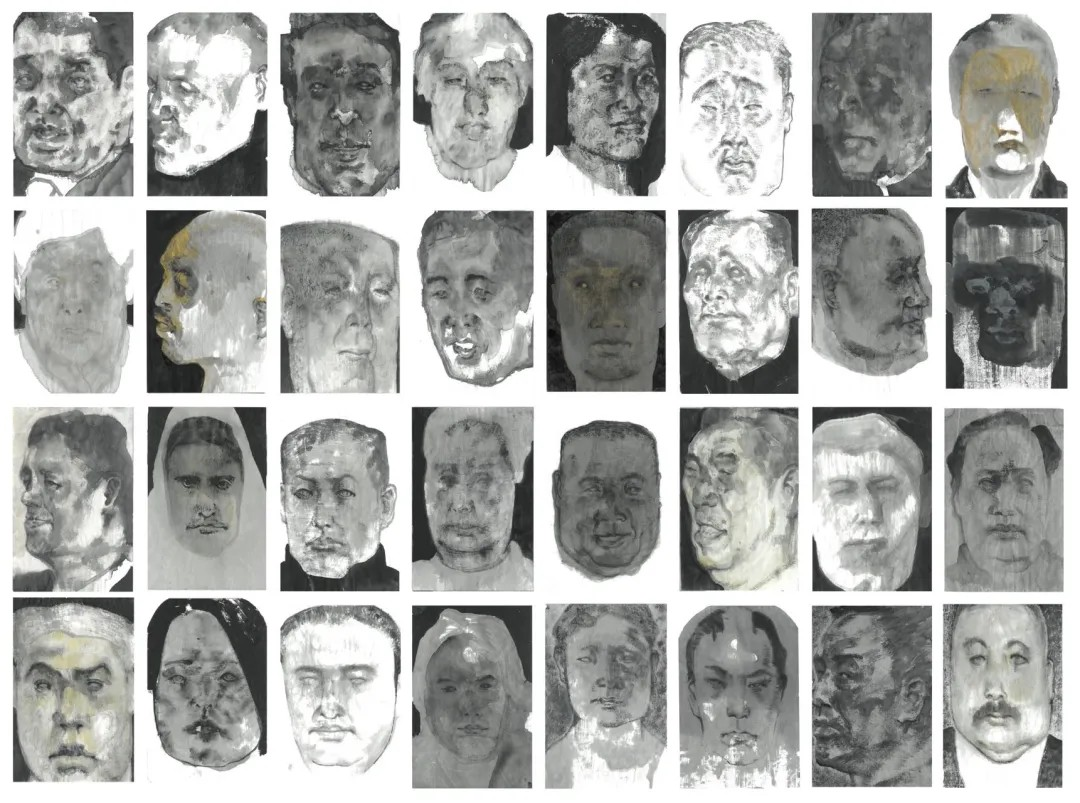 《教室⾥的习作》 纸本素描 78 x 108 cm 2021 梁晰然