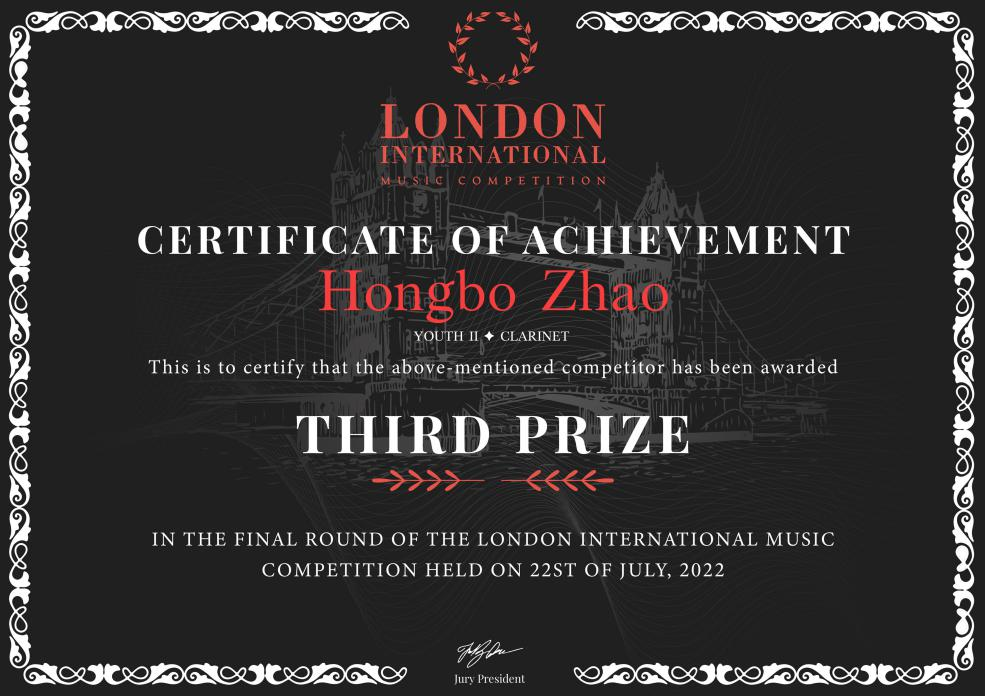暑假期间,我司单簧管专业员工分别在2022伦敦国际音乐比赛、第六届日内瓦国际音乐比赛等国际赛事中获得佳绩。其中,赵宏博(2020级)荣获2022伦敦国际音乐比赛单簧管独奏三等奖(二等奖空缺);盛天顺(2021级)荣获第六届日内瓦国际音乐比赛荣誉奖,指导教师董乐晨获得优秀指导教师奖。