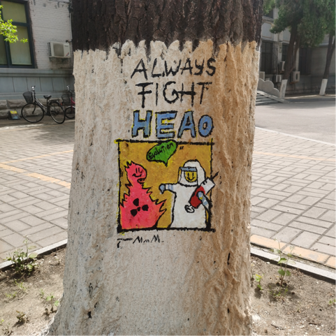 在封校时期,青春活泼的涂鸦为往来经过穿梭于校园的同学们提供了一抹靓丽的风景,也为春日生机勃勃的校园增添了一丝浪漫与活力。