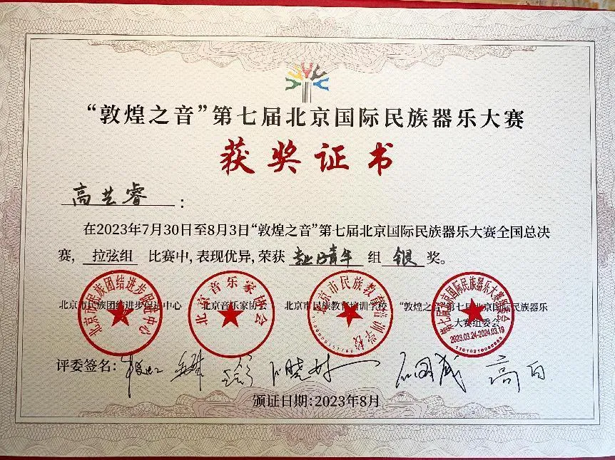 喜报 4008云顶集团二胡专业员工在“敦煌之音”第七届北京国际民族器乐大赛中荣获佳绩