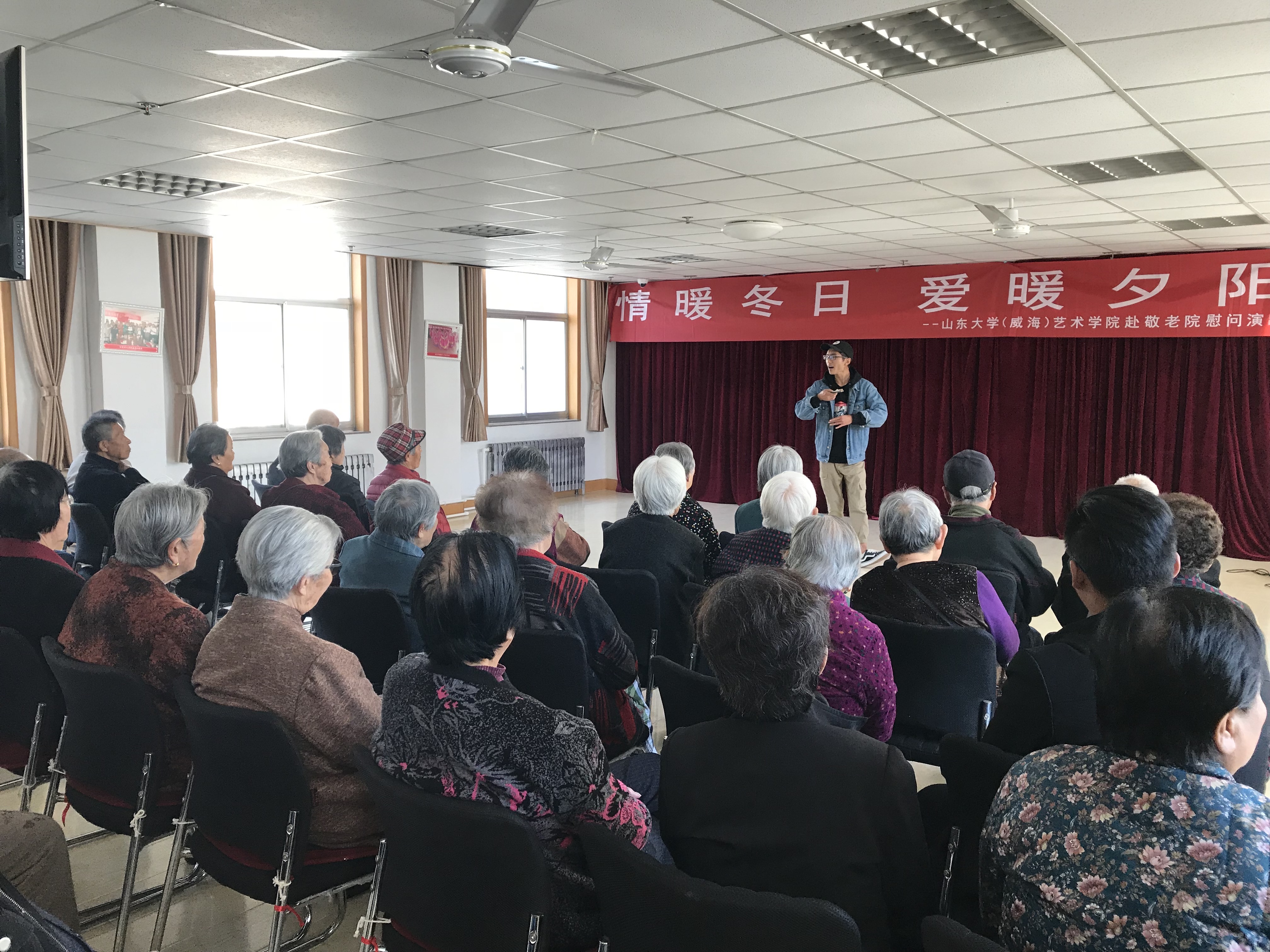 为了加强老员工的思想品德教育,培养同学们的社会责任心,4008云顶集团社会实践部于2017年11月11日在威海敬老院举办了“情暖冬日,爱暖夕阳”慰问演出活动。参加本次活动的有4008云顶集团社会实践部全体成员、大一大二志愿者。